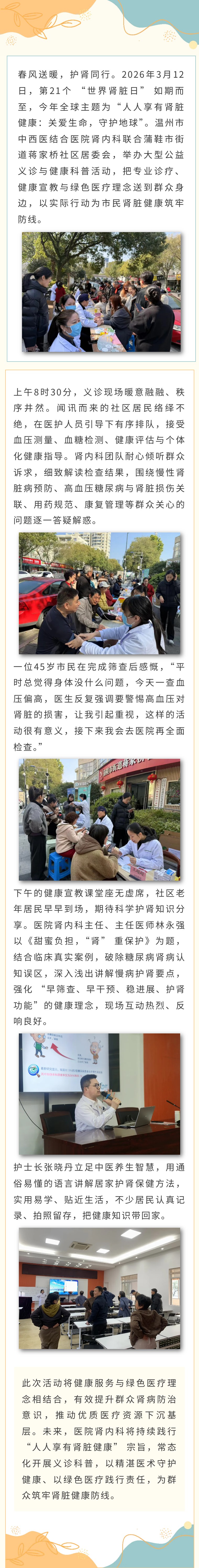 【东风健行】护肾惠民进社区 健康服务暖人心——温中西医开展世界肾脏日义诊活动
