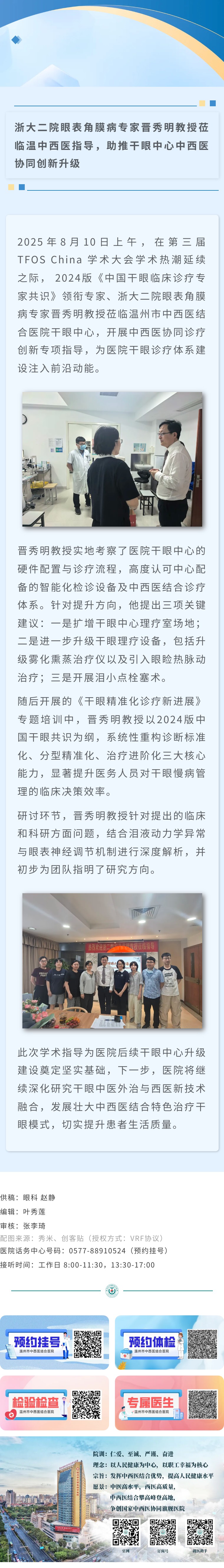 浙大二院眼表角膜病专家晋秀明教授莅临温中西医指导,助推干眼中心中西医协同创新升级