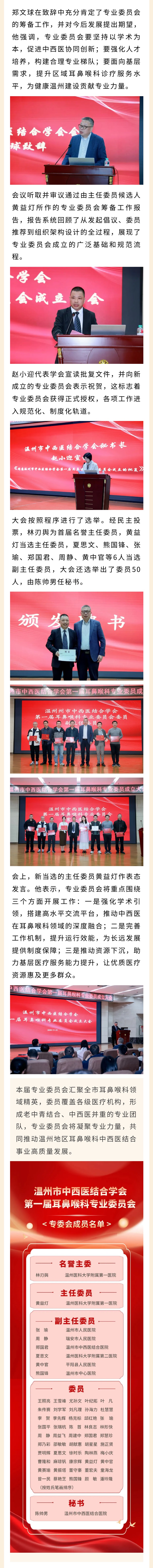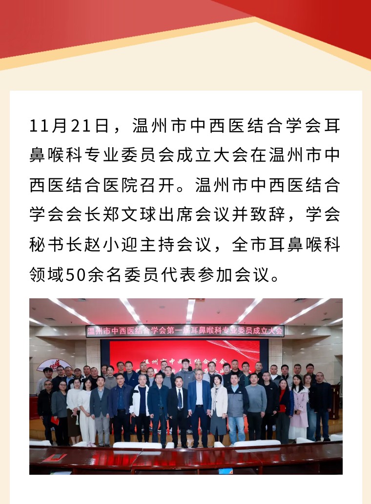 温州市中西医结合学会耳鼻喉科专业委员会成立大会顺利召开