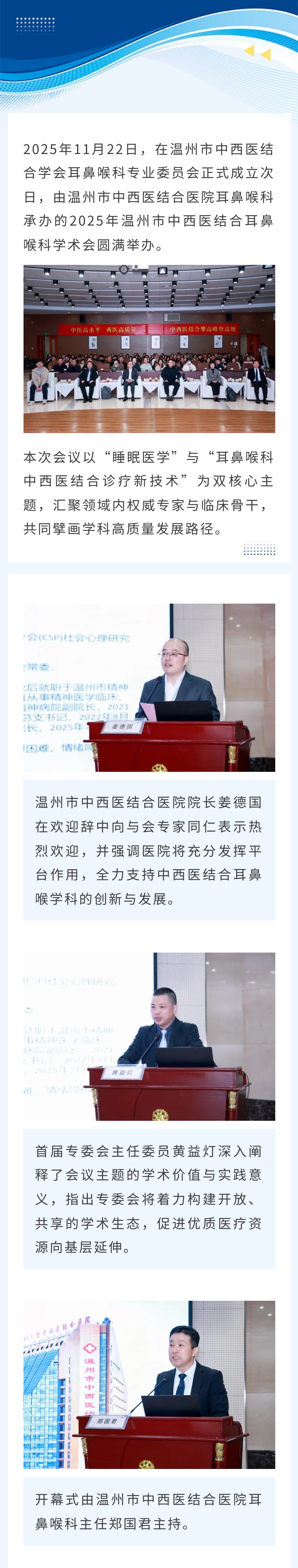 聚焦耳鼻喉医学前沿,推动中西医深度融合——2025年温州市中西医结合耳鼻喉科学术会成功举办