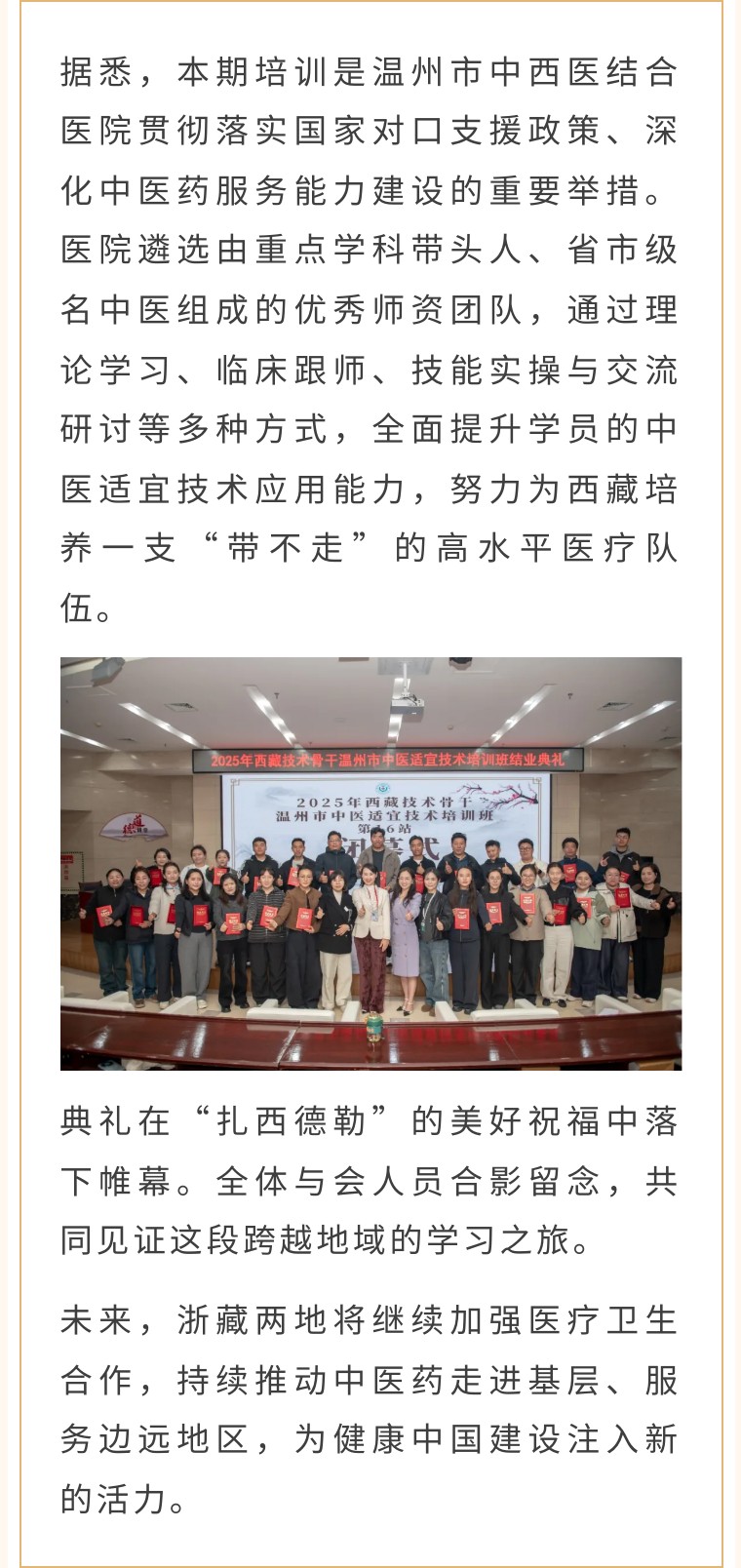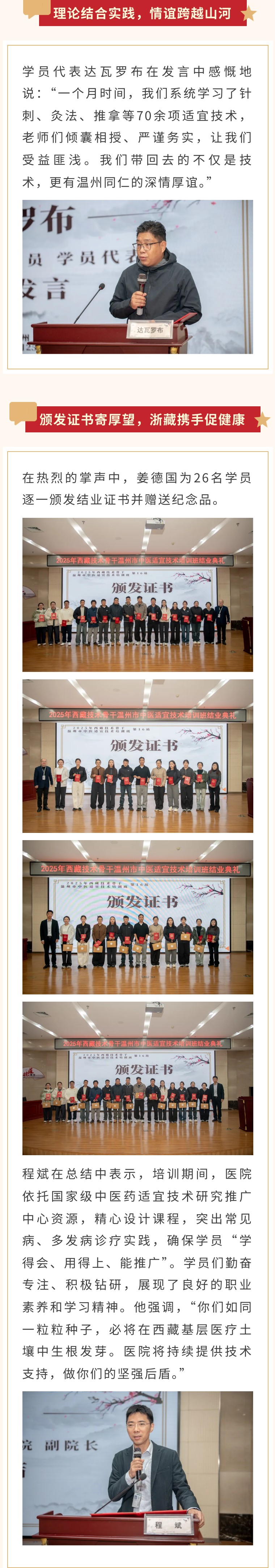 浙藏同心 技术赋能|西藏技术骨干中医适宜技术培训班在温中西医圆满结业