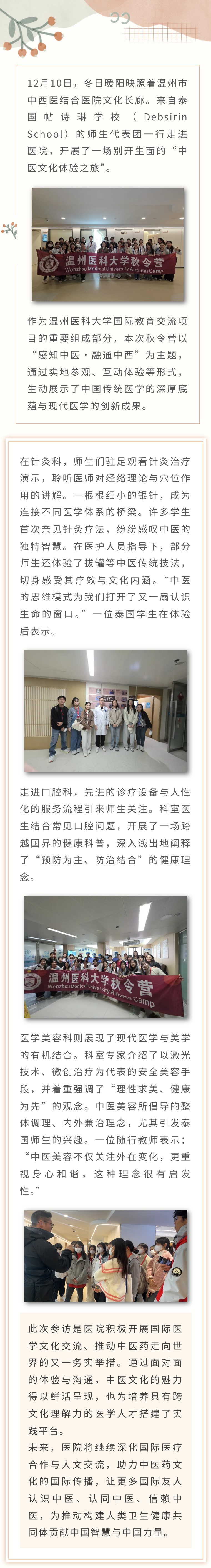泰国帖诗琳学校师生走进温中西医 深度体验中医文化魅力 ——2025年温州医科大学秋令营中医特色科室参观侧记