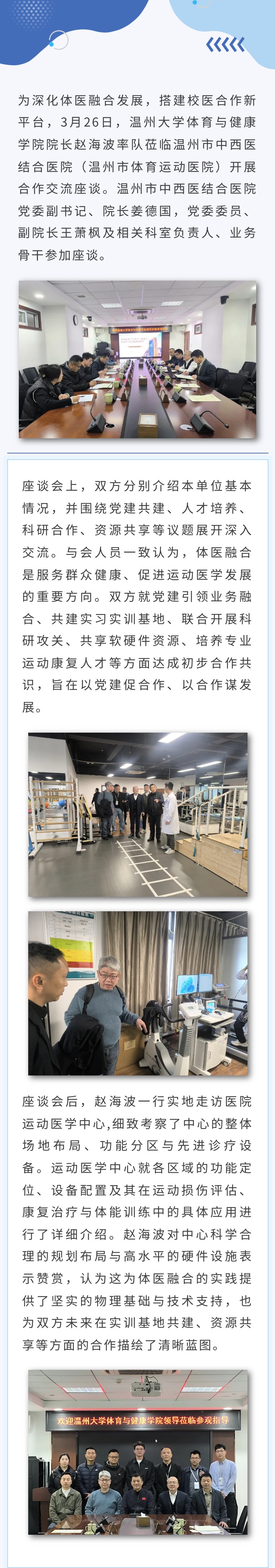 深化体医融合 共筑合作新篇——温州大学体育与健康学院赵海波一行来院调研座谈