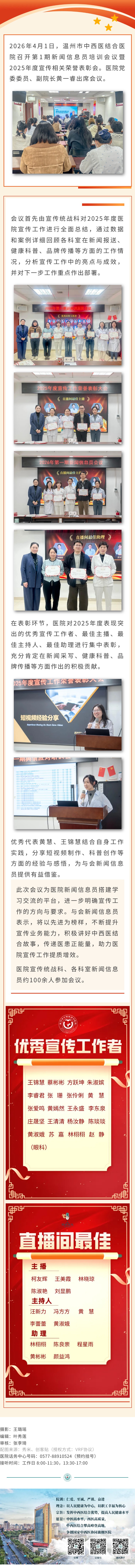 讲好医院故事,传递医患真情——温州市中西医结合医院召开2026年第1期新闻信息员培训暨宣传表彰会