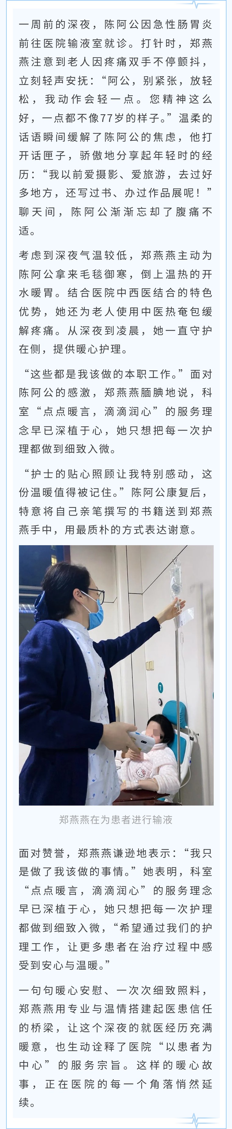 点点暖言,滴滴润心——温中西医护士深夜暖心护理收获患者点赞