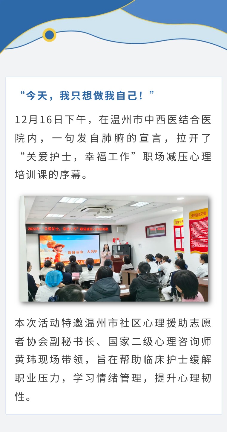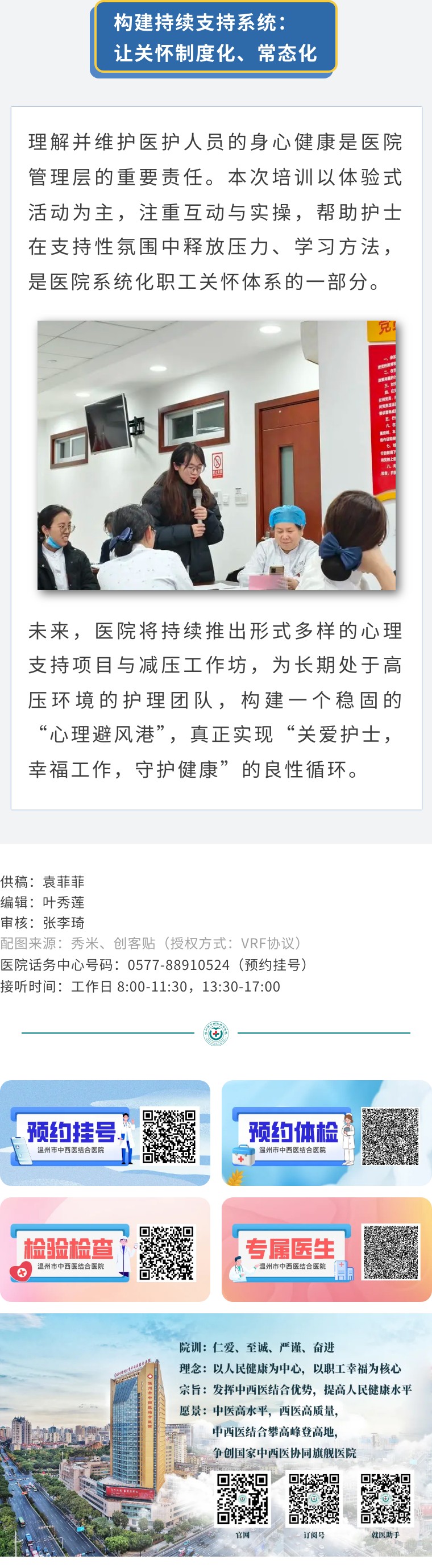 一场专为护士定制的“心灵疗愈”:在温州市中西医结合医院,她们学习与情绪握手言和