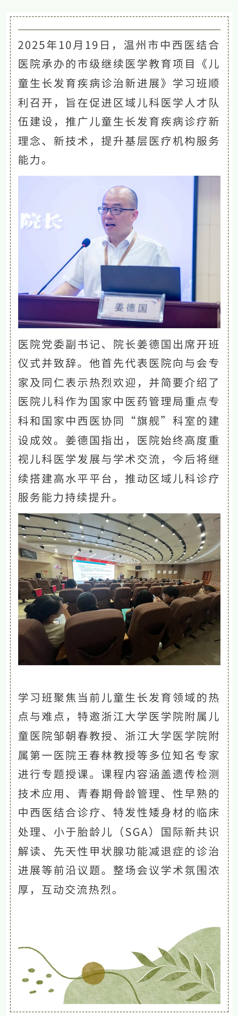 温中西医儿保科成功举办市级继续教育项目《儿童生长发育疾病诊治新进展》学习班