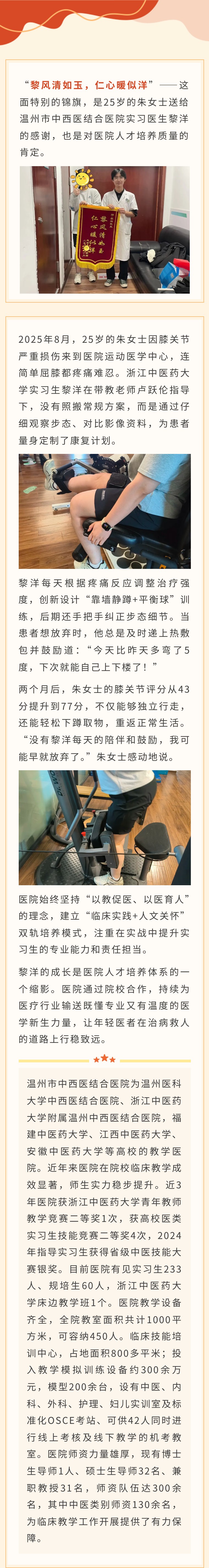 患者送“嵌名锦旗”点赞温州市中西医结合医院实习医生