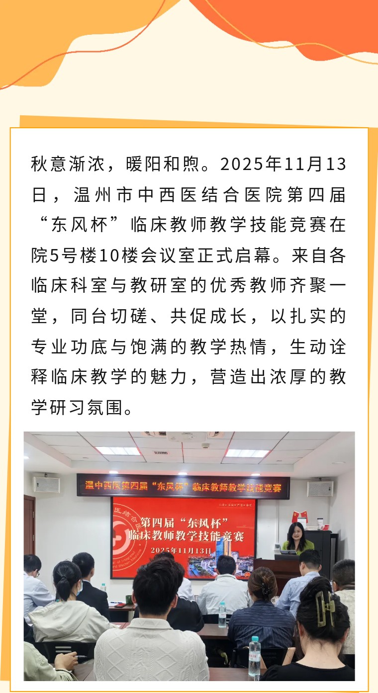 匠心育人 以赛促教——温州市中西医结合医院第四届“东风杯”临床教师教学技能竞赛圆满举行