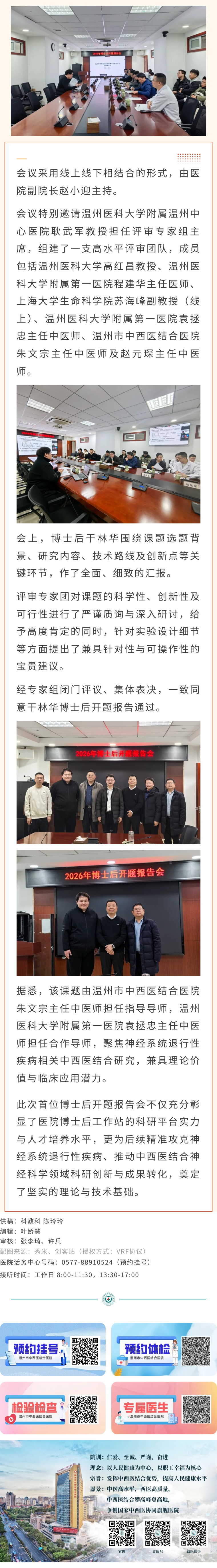 温州市中西医结合医院举行首位博士后开题报告会