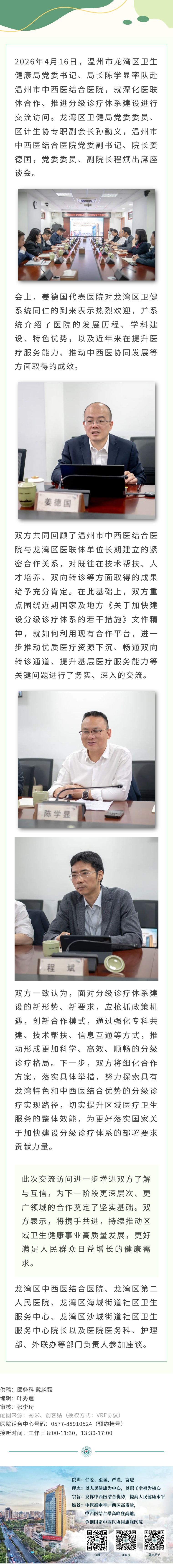 深化医联体合作 共谋分级诊疗新篇章——龙湾区卫健局一行到温州市中西医结合医院交流访问